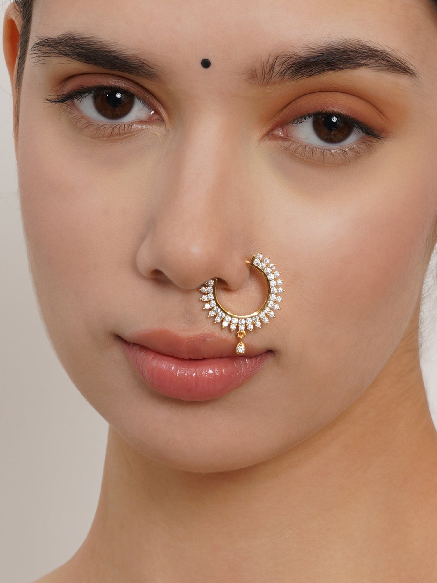 Mali Fionna Gold-Plated Stones-Studded Clip-On Nosering