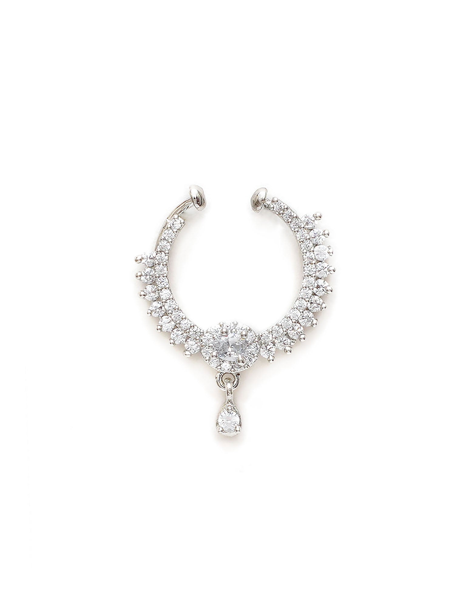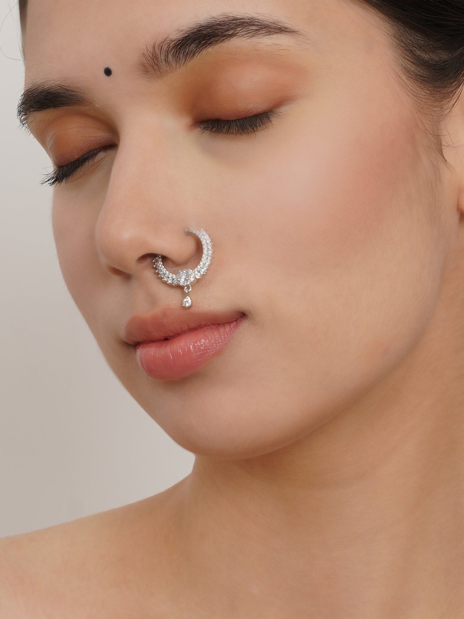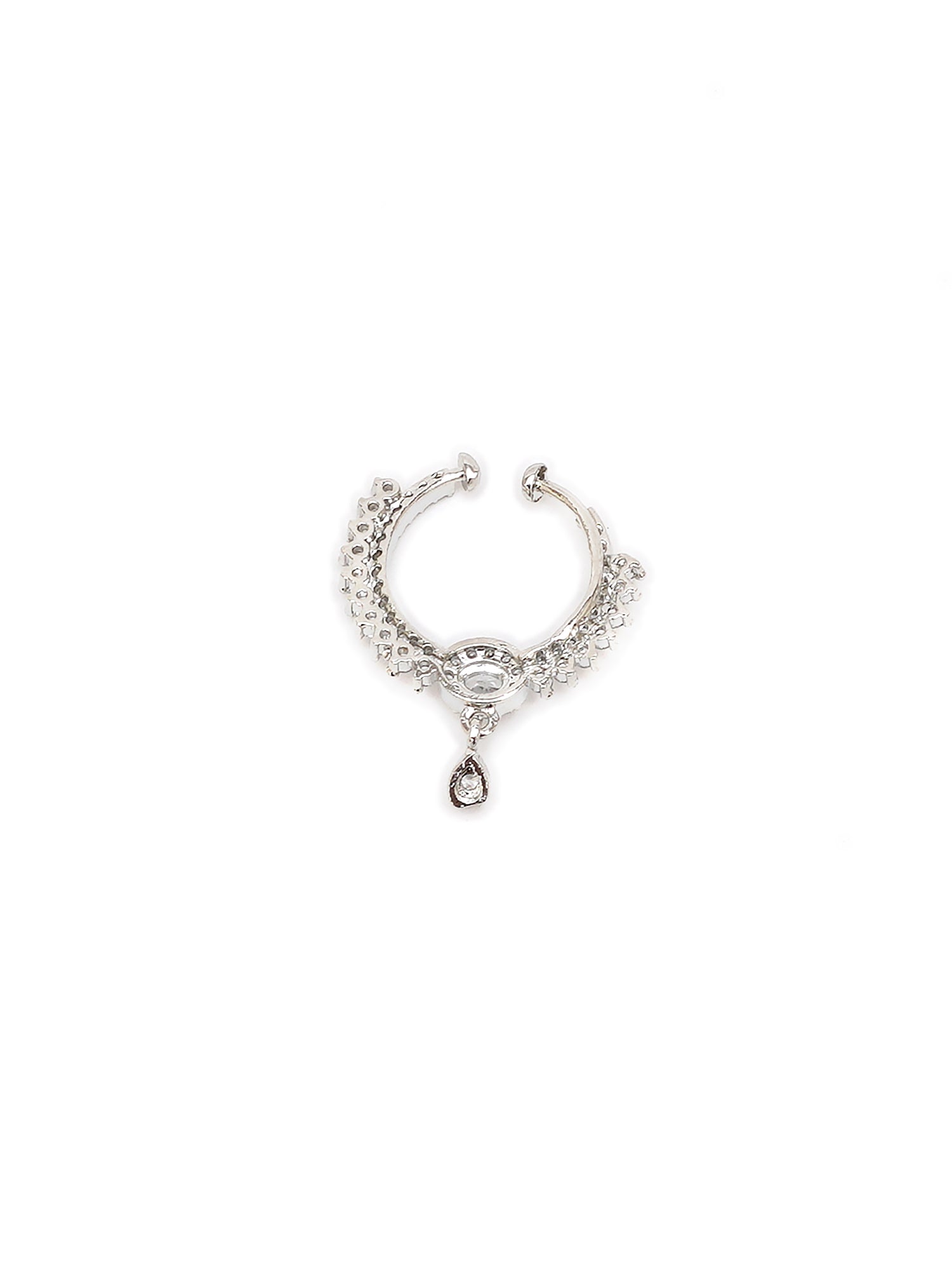 Mali Fionna Silver-Plated Stones-Studded Clip-On Nosepin With Beaded Extension